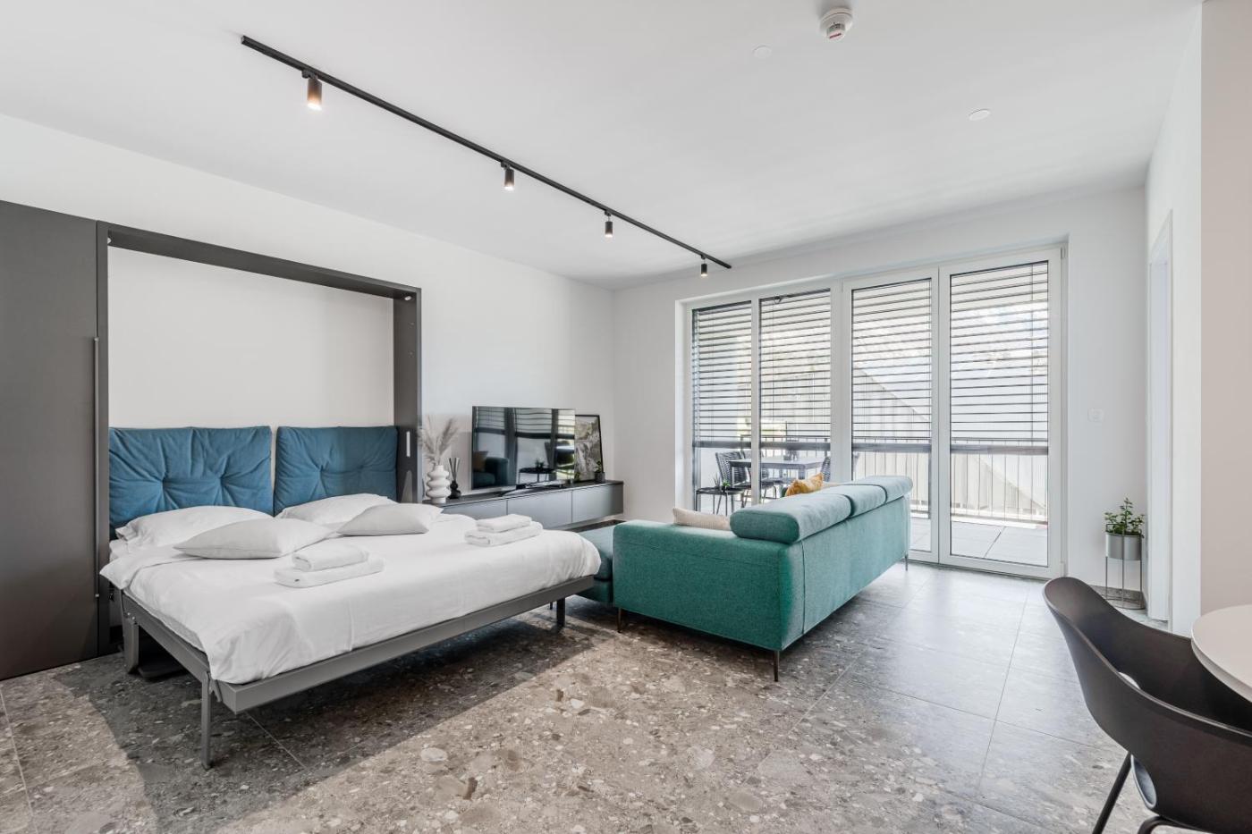 One-Bedroom Apartment with Terrace. This apartment comprises 1 living room, 1 separate bedroom and 1 bathroom with a shower and free toiletries. Guests can make meals in the kitchen that comes with a stovetop, a refrigerator, a dishwasher and kitchenware. The air-conditioned apartment provides a flat-screen TV with streaming services, a washing machine, soundproof walls, a tea and coffee maker as well as mountain views. The unit offers 2 beds.