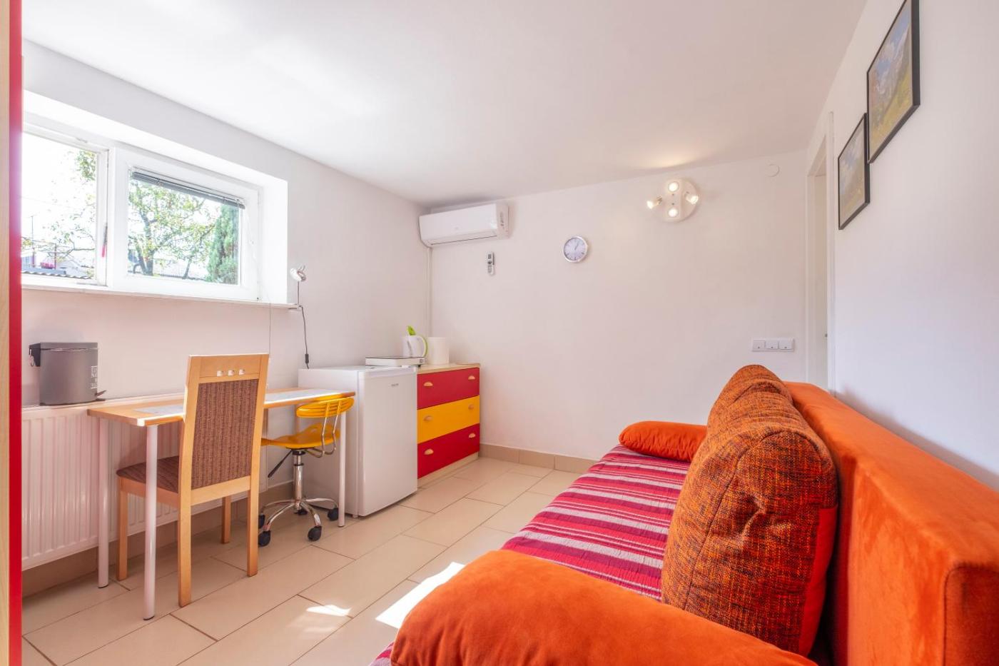 Studio Apartment. The air-conditioned apartment has 1 bedroom and 1 bathroom with a walk-in shower and a hairdryer. Guests will find a stovetop, a refrigerator and kitchenware in the kitchenette. The apartment also comes with a barbecue. Among the room amenities are a washing machine, soundproof walls, a tea and coffee maker as well as outdoor furniture and garden views. The unit has 1 bed.